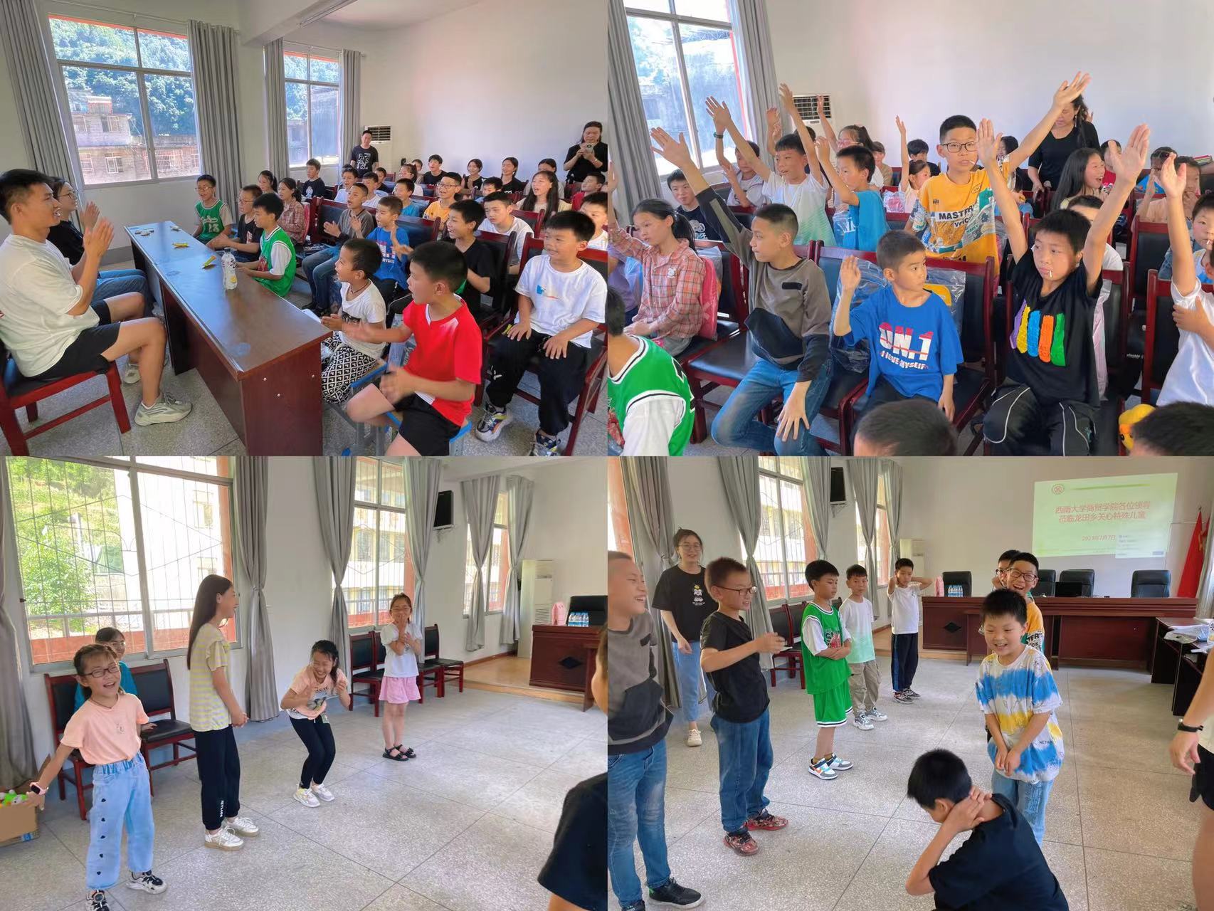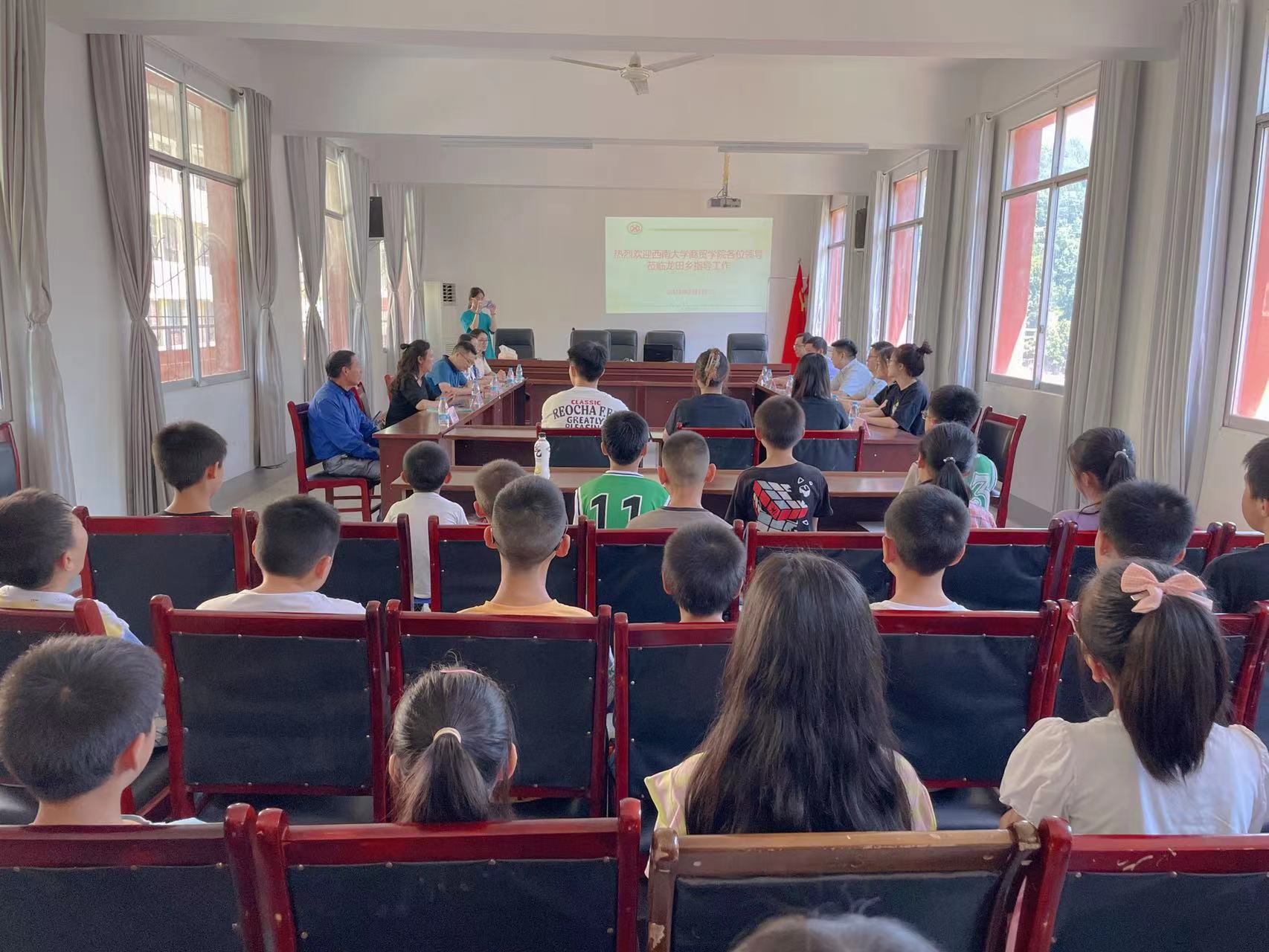 乡党委书记高超向服务团介绍了龙田乡乡情和龙田乡小学的办学特色。他提到,龙田乡小学学生多为务工人员和乡镇移民人员子女,留守儿童人数较多。学校在长期办学的过程中致力于用爱浇灌梦想,教育好每一位孩子,为每一个梦想筑路前行。