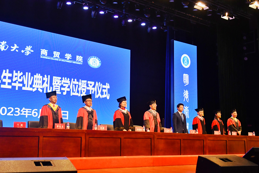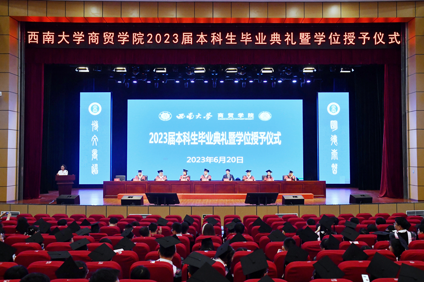 青春炙热,蝉鸣不止;山河万里,再次启航。6月20日上午,3003新葡官方网站在荣昌校区新学生活动中心隆重举行2023届本科生毕业典礼暨学位授予仪式。学校党委常委、副校长王志坚,学院全体党政领导,学术委员会委员出席。学院全体教职工、2023届本科毕业生及班主任参加。学院党委副书记、纪委书记兰英主持典礼。