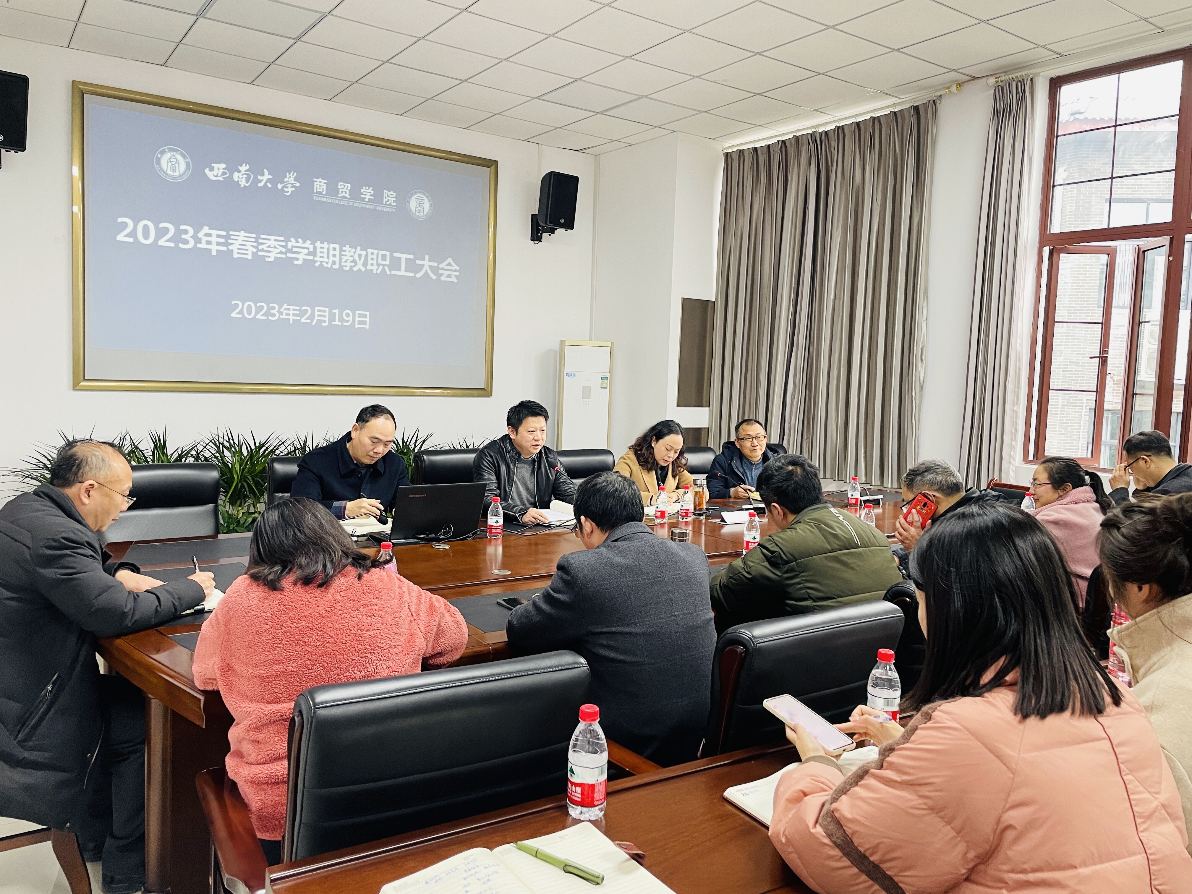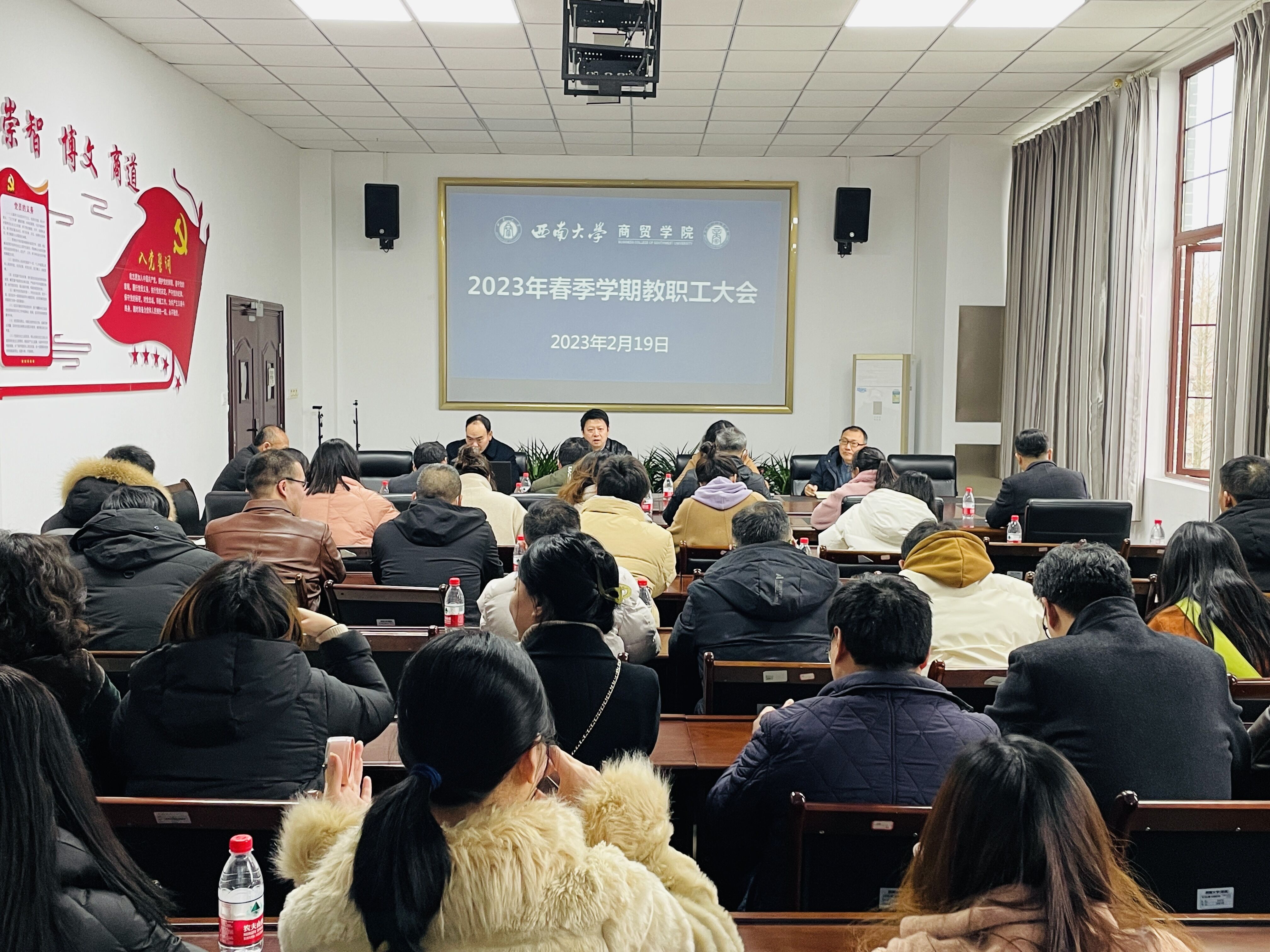 2月19日下午,3003新葡官方网站召开2023年春季学期教职工大会,安排部署新学期主要工作。全体教职工参加会议,学院党委书记王熹主持会议。