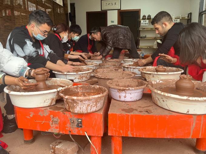 活动的第一站在安陶小镇,同学们在荣昌陶博物馆和荣昌陶制陶工艺体验基地实地参观学习,感受艺术气息,领略文化魅力。在参观博物馆的过程中,同学们纷纷惊叹于陶器制作之精美,对中国传统精湛工艺的独到之美和悠久历史文化的生机活力赞叹不已。在专业老师的指导下,大家还现场学习了制陶的基本工艺,在亲身实践中感受到制陶的精妙,更是在制陶的乐趣中领悟到了中华传统瑰宝的无尽魅力。