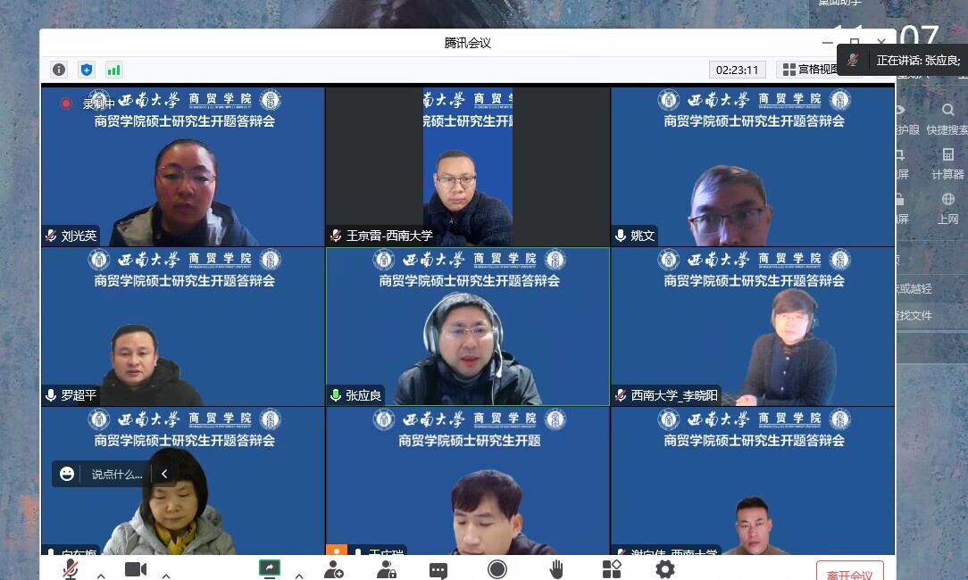 为保证研究生培养质量,提高研究生学术研究能力,12月17日上午,由张应良教授、李晓阳教授、罗超平教授、向东梅副教授、姚文副教授组成专家组,对学院2021级企业管理(学术型)、农业管理(专业型)硕士研究生学位论文进行了开题答辩。学院部分教师和全体2022级研究生参加了本次会议。