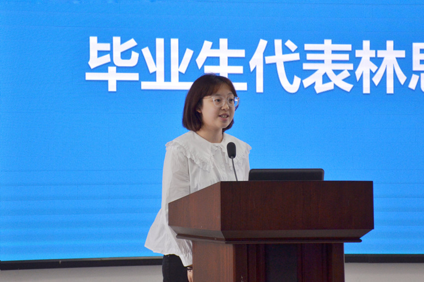 2023届本科毕业生代表林思捷在发言中代表全体毕业生承诺:将会积极调整求职心态,努力争取就业岗位;明确自我定位,做好求职准备,不断尝试积累;不断适应新形势,打好就业主动仗。始终坚守初心,以“小我”融入“大我”,为梦想奋斗不止。