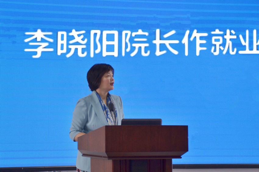 学院院长李晓阳在大会上作了就业动员报告。她在报告中分析了就业工作面临的严峻复杂形势,表示学院将会是毕业生坚强的后盾和坚定的后援,将与同学们携手面对困难。同时,她也为毕业生求职就业提出几点希望和建议:全面认识自己,认真选择方向;勇于应聘尝试,善于灵活调整;转变就业观念,放眼未来发展;明辨是非曲直,择善行而从之。希望全体毕业生不负青春韶华,实现人生理想。