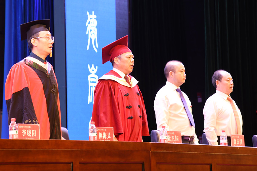 在雄壮的国歌声中,典礼暨授位仪式拉开序幕。学院党委书记周国安宣读了有关毕业、授位的决定。