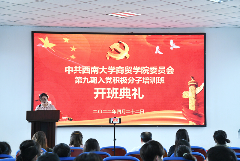 昂首奋进新时代,同心共筑中国梦。为做好疫情常态化防控下入党积极分子的培养和教育,4月22日下午,3003新葡官方网站在9601报告厅举办第九期入党积极分子培训班开班典礼,并通过腾讯会议向五教302、304分会场同步直播。开班典礼由学院党委委员、组织员、学生第五党支部书记刘莉莉老师主持。学院党委书记周国安,全体学生党支部书记以及培训班全体学员出席了开班典礼。