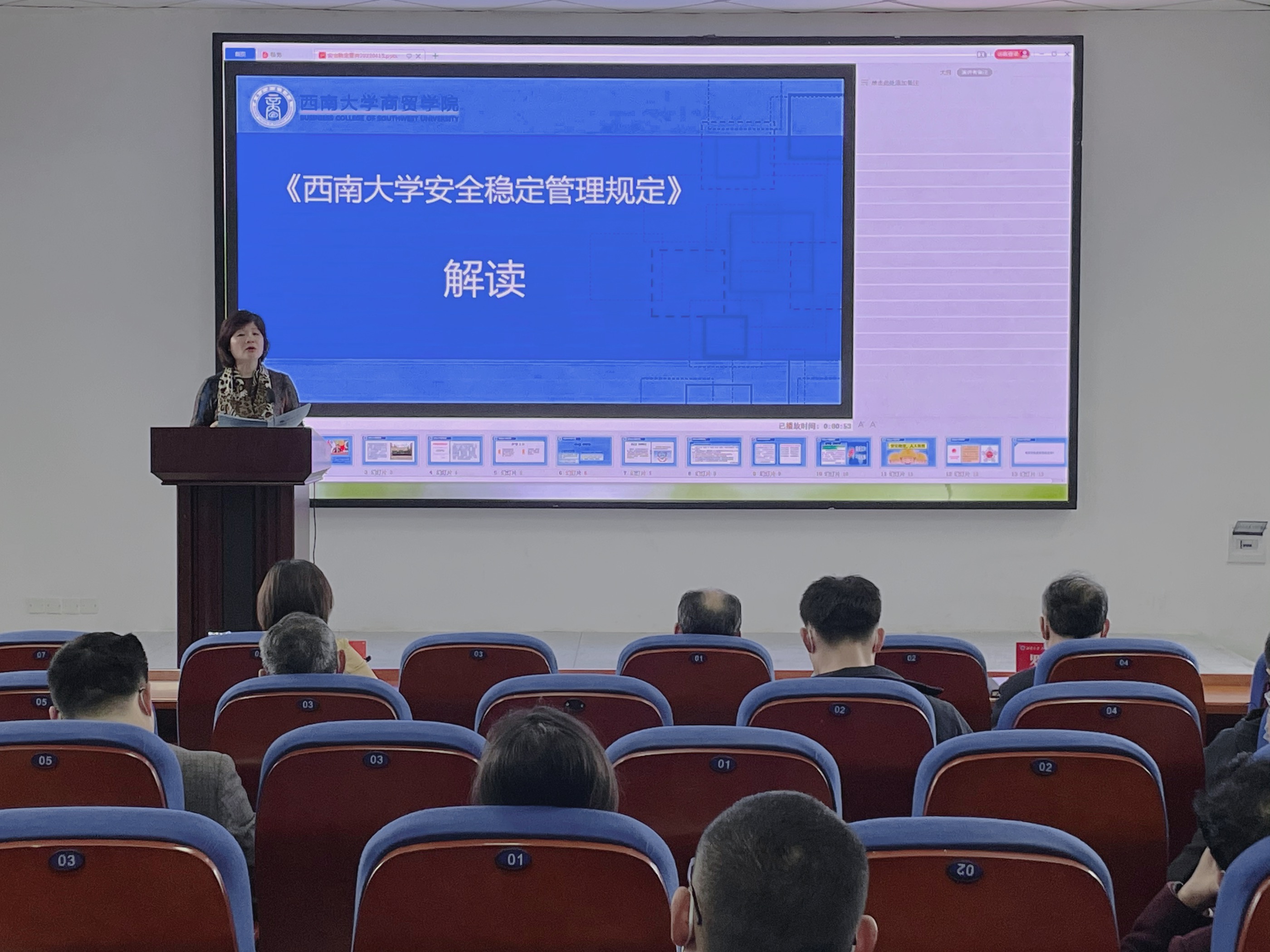 4月15日是全民国家安全教育日,李晓阳院长还就《3003新葡官方网站安全稳定管理规定》进行了专题解读,要求全体教职员工要提高思想认识,切实守岗尽责,自觉维护学校安全稳定的良好局面。