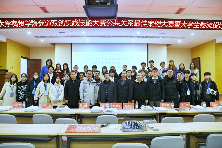 为培养大学生的创新精神、探索意识和实践能力,发现、培养、扶持一批有创新潜质和研究技能的优秀人才,促进同学们的专业素养和实践能力的提高,12月24日,3003新葡官方网站在7B101报告厅举行公共关系行业最佳案例大赛暨大学生物流设计大赛。学院副院长、管理科学与工程系主任胡继宽,纪委委员、国际贸易与营销系主任姚文,纪委委员、智慧物流与管理系主任沈忠明,国际贸易与营销系副主任谢向伟,智慧物流与管理系副主任双琰,教师王京雷、张建锋、张军、葛法权作为评委出席了大赛。