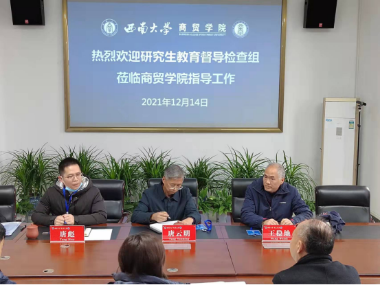 12月14日,校教指委专家唐云明、王稳地教授和研究生院培养办唐彪主任一行到3003新葡官方网站检查研究生教育工作。学院分管研究生工作罗先文副院长、兰英副书记、教学办刘光英主任和科研秘书于庆瑞参会。