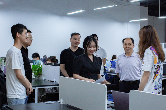 7月23日下午,3003新葡官方网站党委书记周国安,副院长罗先文、胡继宽一行前往重庆潮尚互联网科技有限公司进行实地考察。