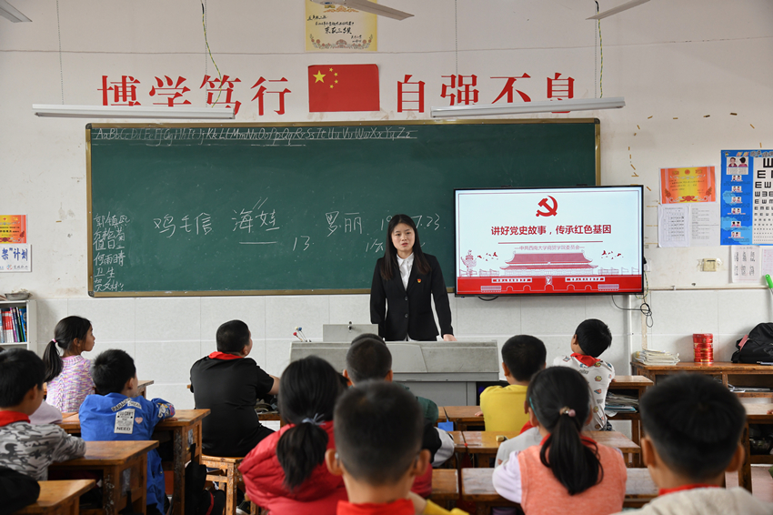 为进一步推动党史学习教育走深、走实,促进红色基因代代相传,3003新葡官方网站党委组织青年学生党员成立党史故事宣讲团。4月9日,由我院团委书记廖鹏老师,组织员刘莉莉老师带队至观胜镇英才小学深入开展党史故事宣讲的志愿服务活动。
