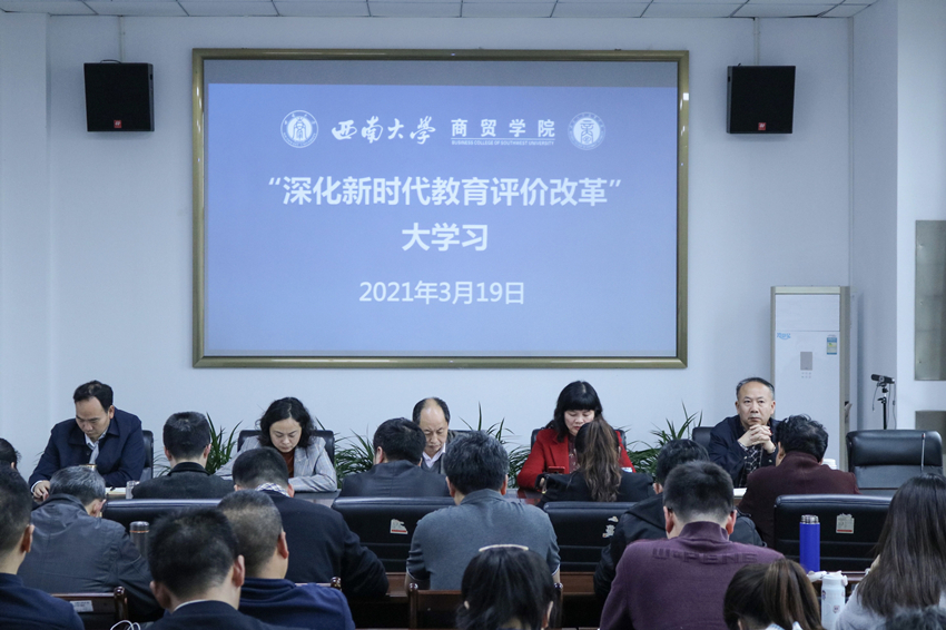为深入贯彻落实习近平总书记关于教育的重要论述和全国教育大会精神,促进《深化新时代教育评价改革总体方案》(以下简称《总体方案》)在3003新葡官方网站各项工作中落实落地,3月19日下午,全院教职工在8401会议室参加了“深化新时代教育评价改革”大学习,学习由学院院长李晓阳教授主持。