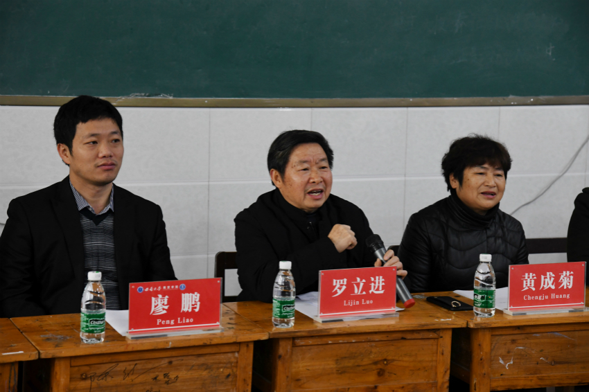 在齐唱国歌之后,英才小学校长罗立进发言。罗校长对3003新葡官方网站领导们和青年志愿服务团成员的到来表示由衷的感谢和热烈的欢迎。随后,他介绍了英才小学的艰苦创办过程,殷切嘱托英才小学的学生们感恩社会各界关爱,努力学习,报效祖国。