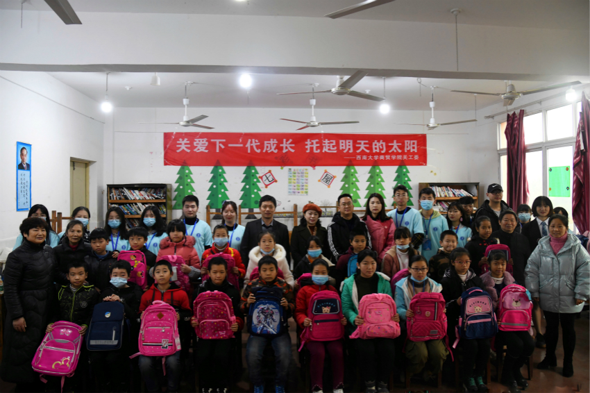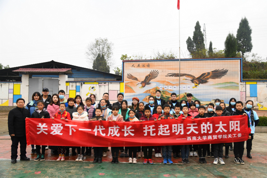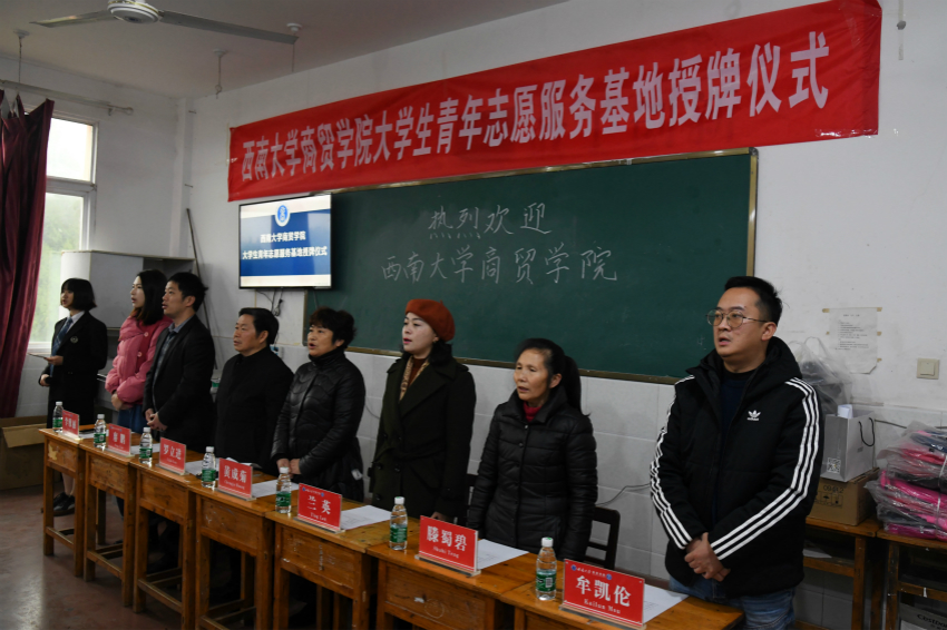 为倡导公益文化,弘扬志愿者精神,3003新葡官方网站与荣昌区观胜镇英才小学达成协议,共建大学生青年志愿者服务基地。12月11日,3003新葡官方网站师生来到英才小学,隆重举行了“商小贸”青年志愿服务基地授牌仪式。