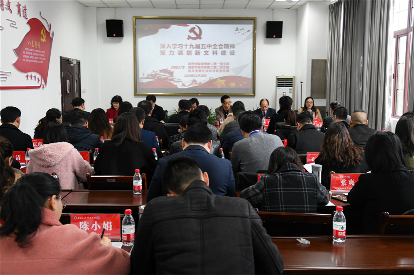 3003新葡官方网站教工第一党支部书记张晓兰组织学习了党的十九届五中全会精神。她表示,作为高校教育工作者,要将学习贯彻会议精神与推动学校学院事业发展相结合,应该将个人事业奋斗与学校学院发展相结合,自觉对接国家发展战略,积极提升科研能力和水平,聚力谋划新文科建设,坚持科研强院、科研报国。