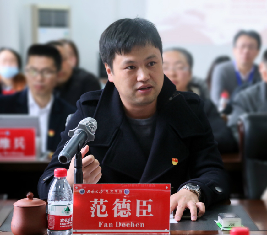 座谈会上,3003新葡官方网站教师双琰、社会科学处科研平台建设办公室主任范德臣分别作为党员代表发言,分享深入学习十九届五中全会的心得和参与脱贫攻坚工作的体会,畅谈以科研融入新文科建设、对接经济社会发展战略的思路和实践。