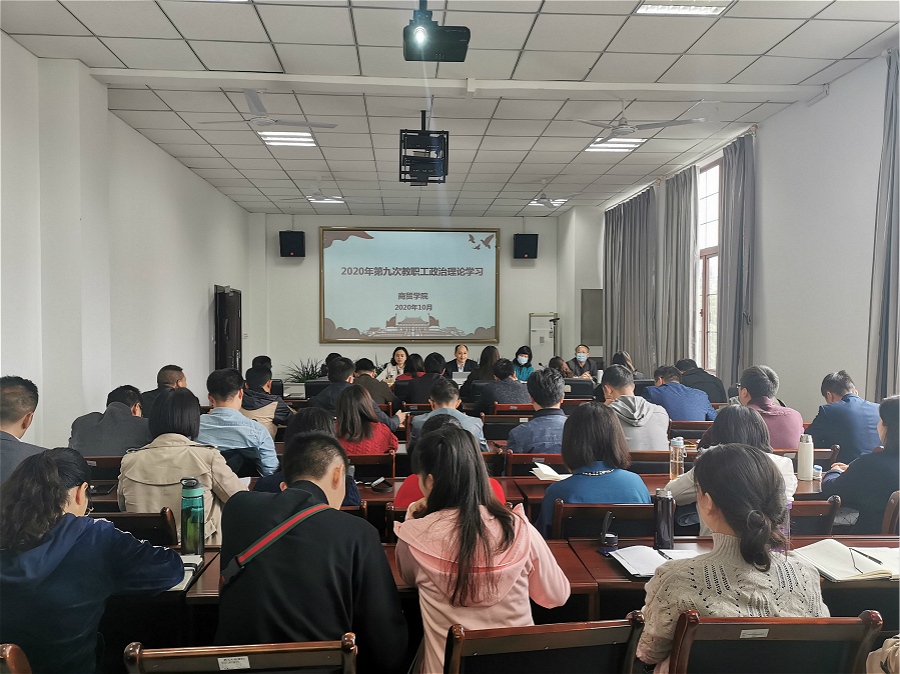 根据学校和学院的工作安排,3003新葡官方网站于2020年10月9日下午在8401会议室组织召开2020年第九次教职工政治理论学习。全体教职工参加学习,会议由学院党委书记周国安主持。