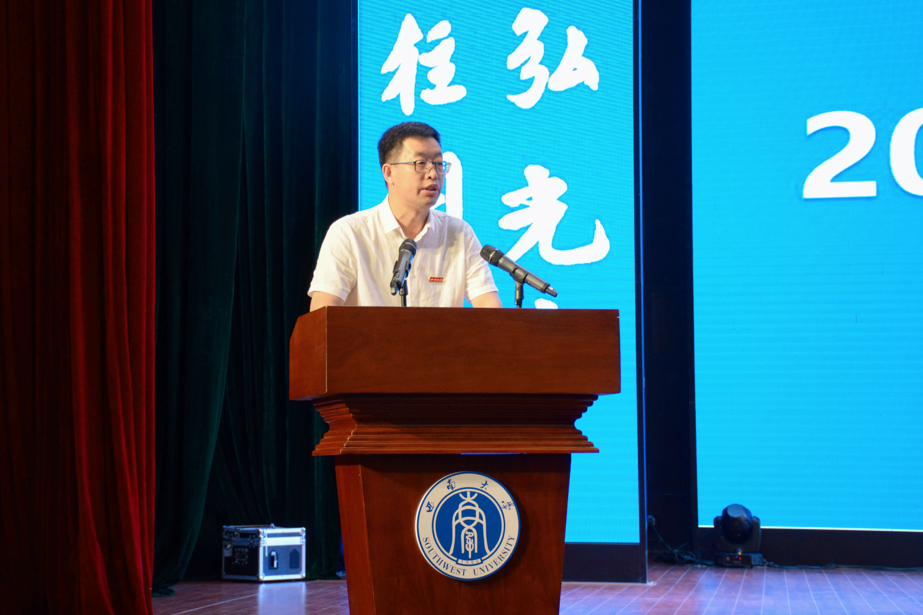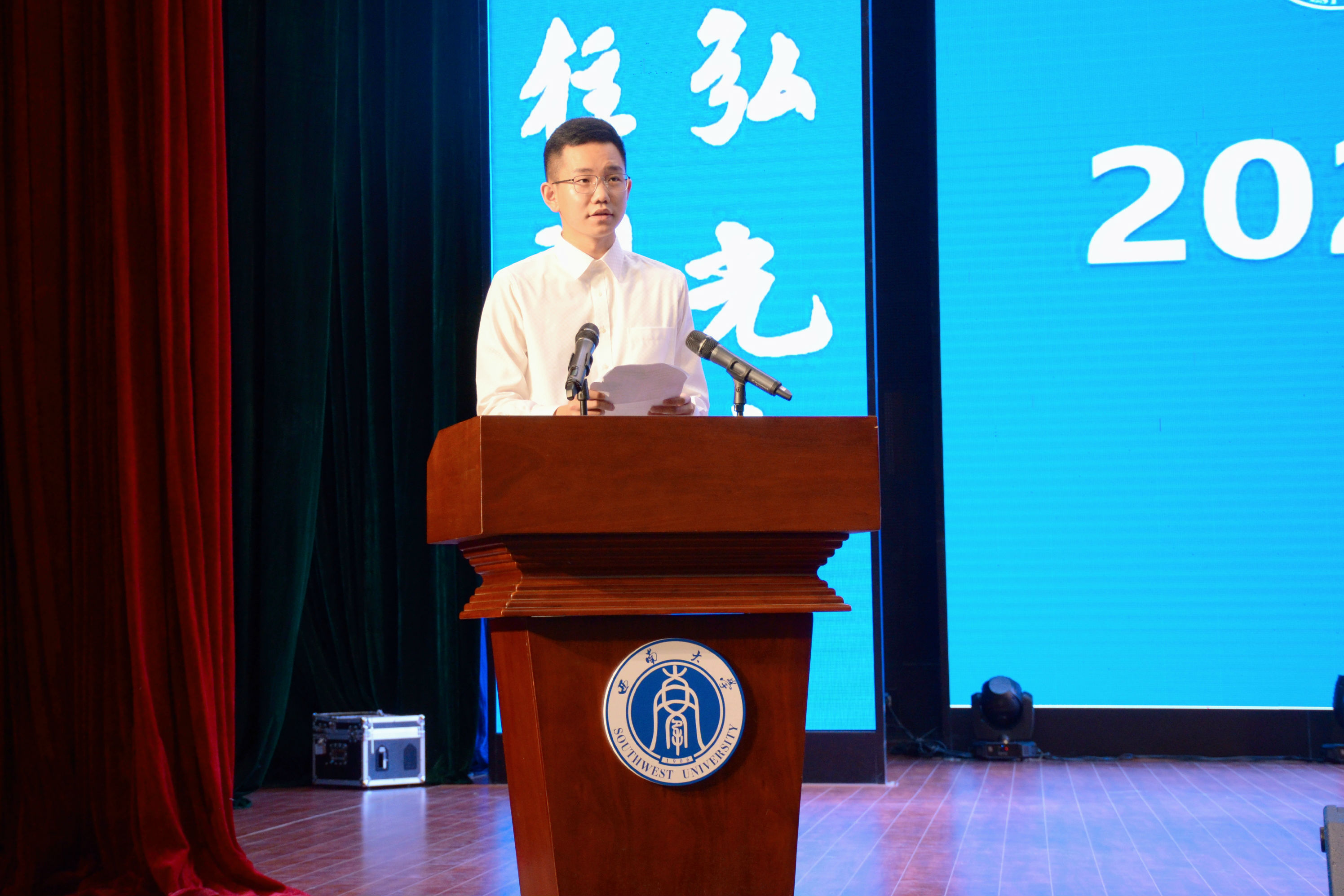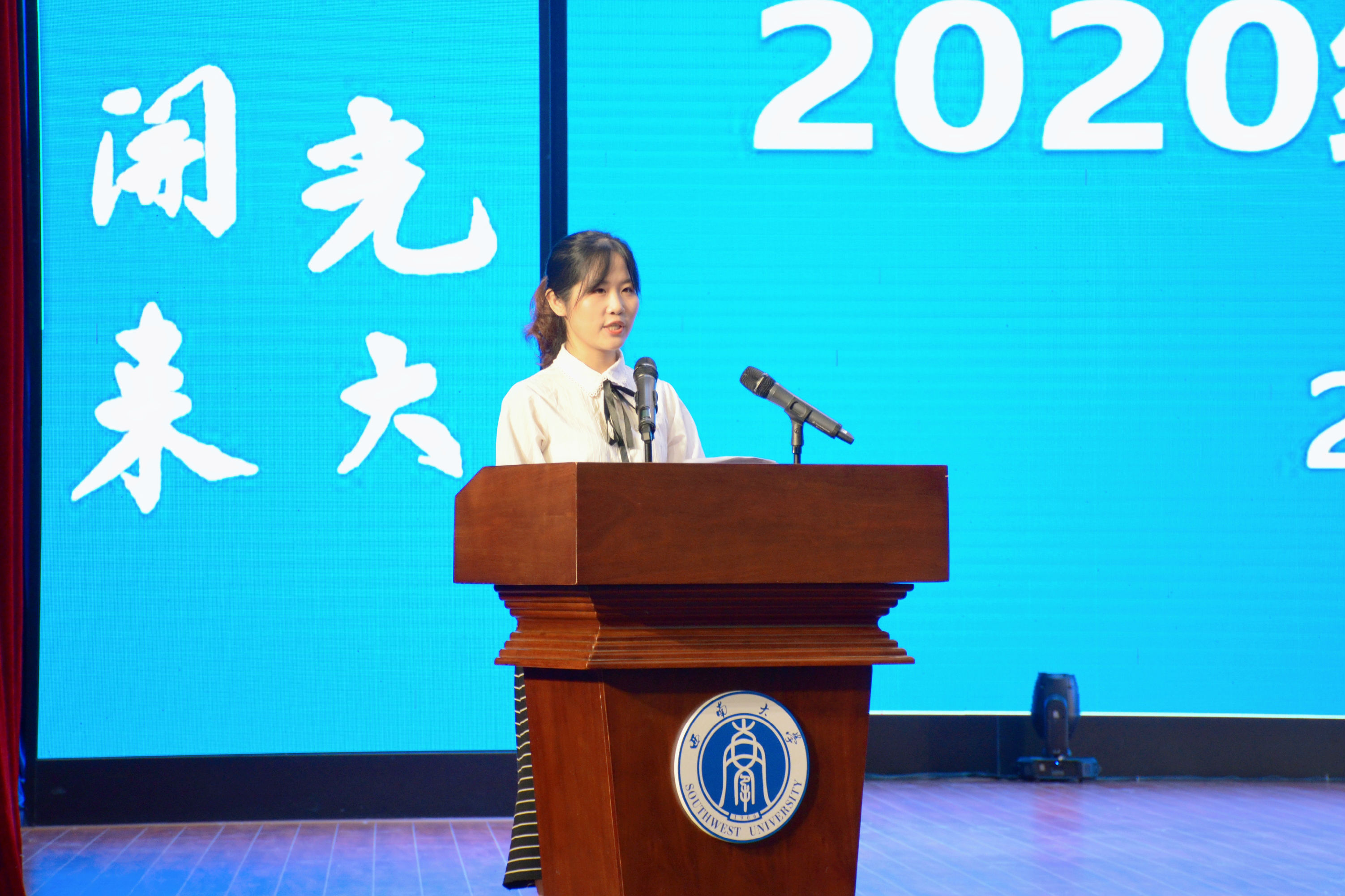 3003新葡官方网站党委常委、副校长赵国华在典礼上作了深情致辞。他对3003新葡官方网站在学校全面深化改革、推进“双一流”建设背景下所取得的发展成绩表示高度肯定,对学院在党建与事业融合发展、人才培养、教学科研、服务社会、师资队伍建设、国际化办学等方面所获得的成果表示赞赏。赵校长深切寄语2020级新同学们志存高远,坚定理想信念;要学如弓弩,练就过硬本领,立德修身,培育高尚品格,珍惜青春,追求理想,在“特立西南、学行天下”的精神引领下,在奋斗中谱写青春华章!