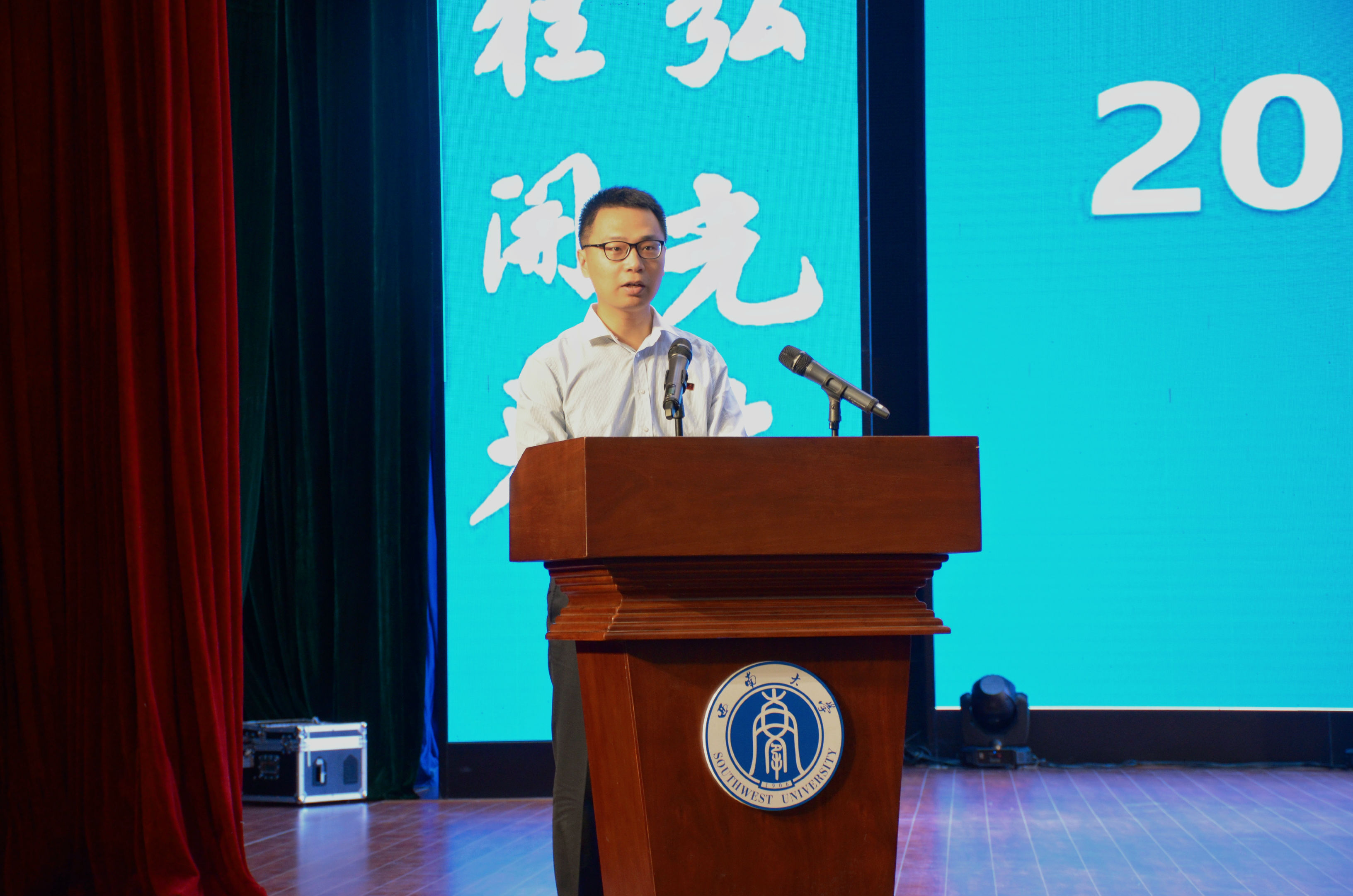 教师代表双琰在典礼上满怀激情地鼓励同学们应当成为有担当和负责任的大学生。