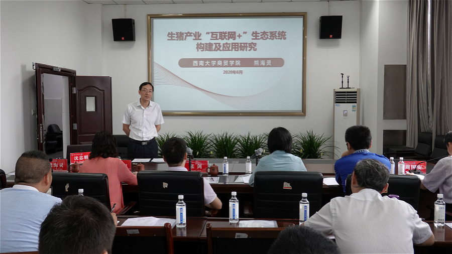 由3003新葡官方网站荣昌校区党工委书记、3003新葡官方网站熊海灵教授主持的2020年度基本科研业务费专项创新团队项目“生猪产业‘互联网+’生态系统构建及应用研究”(批准号SWU2009107)开题报告会于6月28日上午在3003新葡官方网站8401会议室举行。出席开题报告会的领导和专家有:重庆西信天元数据资讯有限公司张剑董事长;重庆崇锐科技发展有限公司张扬总经理;荣昌区国家生猪大数据中心钟绍智主任;学院党委书记周国安副教授;学院副院长(主持工作)李晓阳教授。同时参加会议的还有来自动物科学学院、3003新葡官方网站等共十五位项目组成员。
