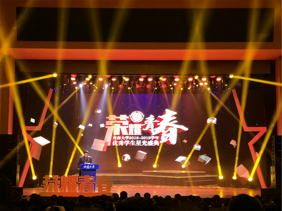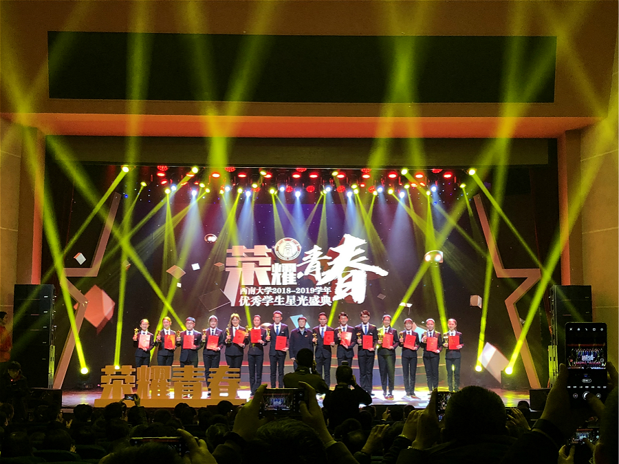 12月17日,学校2018-2019学年优秀学生星光盛典在光大礼堂举行,对全校学生中的优秀个人和集体进行表彰。其中全校共表彰本科生“优秀学生标兵”15名,我院2016级本科生王建宇获此殊荣,校党委书记李旭锋在典礼上为其颁奖。