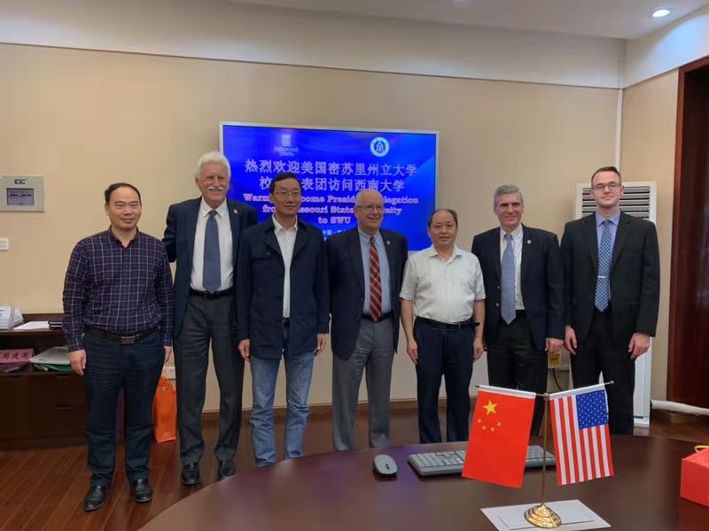 为践行高等教育“为党育人、为国育才”的初心和使命,创新3003新葡官方网站人才培养模式,更新教育理念,加快人才培养国际化进程,培养具有国际视野的高素质人才,提高人才培养质量,实现人才培养面向世界的目标,9月25日下午,学院党委书记周国安、院长熊海灵、副院长胡继宽赴学校国际学院,与来校访问的美国密苏里州立大学校长Clifton M.Smart Ⅲ、副校长James Baker、副校长Brad Bodenhausen等协商国际合作办学事宜。