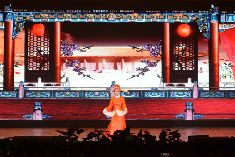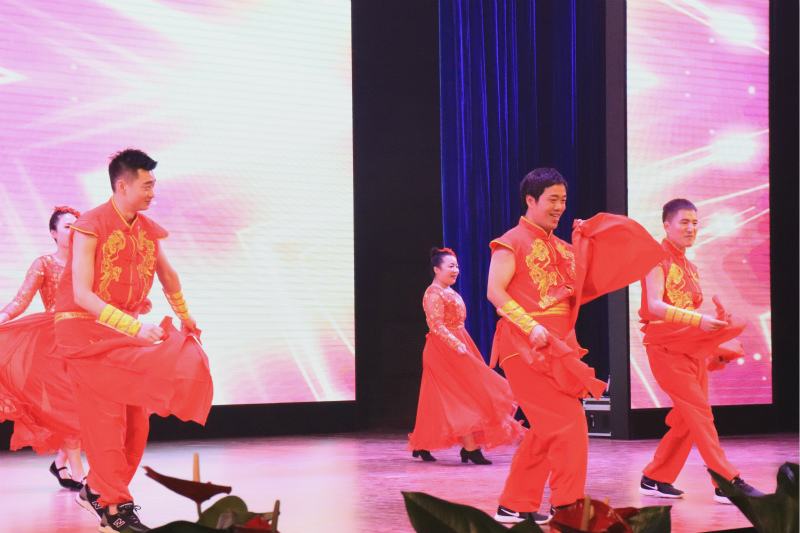 学院教职工选送的舞蹈节目拉开了晚会序幕,在《火了火了火》欢快的音乐声中,老师们走下讲台融入学生,用动感的舞步展现他们的活力四射;舞蹈《致青春》回忆那些年的青葱岁月,品味年少时的美好;歌曲《我们都是追梦人》描绘出中国梦的宏大壮阔,激昂追梦赤子心;霓裳曳广带,飘拂升天行,一舞《敦煌·乐天》清颜古衫,青丝墨染若灵若仙地重现了丝绸之路上驼铃铛铛的千年回眸,将晚会气氛推向了高潮。晚会节目精彩纷呈,现场高潮迭起,展现出商贸师生的时代风貌,这既是奉献给祖国的赞歌,也是展现商贸人勇毅前行的时代旋律。