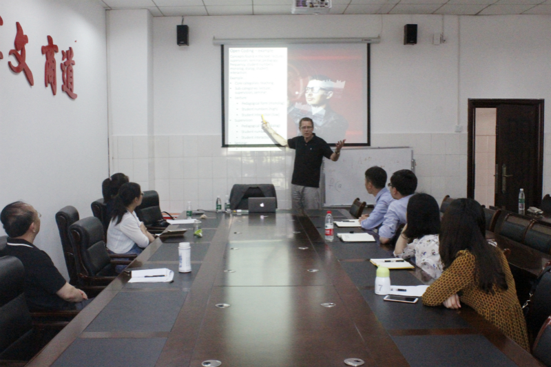 22日及24日下午,Stefan教授的“科学是一种观察和交流”主题讲座在第二会议室开讲。学院副院长罗先文,院长助理、公共事业管理系主任沈忠明,院长助理、市场营销系主任姚文,计算机科学系副主任肖兴江及学院部分教师参加了本次讲座。Stefan教授在讲座中分别介绍了定量分析和定性分析的概念以及两种方法的优势和劣势。详细说明定量分析中数据的收集方式和分析技巧,向与会教师们分享了通过控制变量及开放编码进行数据分析的方法。