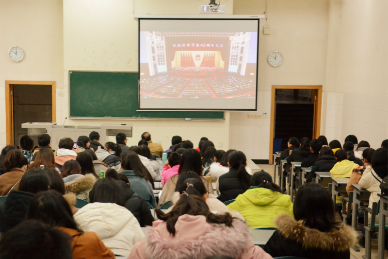 为总结好、宣传好改革开放40周年的伟大成就,增强广大师生在实现中华民族伟大复兴进程中的责任感和使命感,12月18日上午10:00,学院领导及师生在第二教学楼2711集中观看了庆祝改革开放40周年大会现场直播。