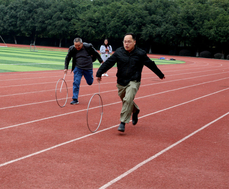 另外,学院教职工也全员参与到本次运动会中。9日下午,工会两个小组成员在“心心相印螃蟹跑”“滚铁环铁环接力”等趣味项目中展开角逐,最终工会二组以总分领先取得胜利。教职工趣味项目以趣味和参与为主,在赛场上留下欢声笑语,引来大批同学围观造势。
