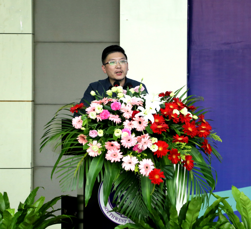 濑溪河畔金桂树,十月花开不待春。10月24日下午,第八届中国畜牧科技论坛之首届“创新创业论坛”在我院举行。本次论坛以“创新创业谋发展,青春建功新时代”为主题,是我院五大人才培养计划之“商道双创”计划的重要支撑内容。荣昌区委常委、副区长周维颖,市科委主任助理张永涛,市就业局原副局长高鹏翔,阿里云计算有限公司阿里云大学总经理王晓斐,软通动力信息技术(集团)有限公司高级副总裁黄岩,中国科学院国家遥感应用工程技术研究中心智慧城市课题组组长张会娟,途牛北京恒信国际旅行社有限公司总经理张丽,重庆宗申产业集团有限公司首席信息官吴强,顺丰科技有限公司数据运营与分析工程师窦一峰等校外领导、专家、嘉宾及优秀校友应邀参加,校党委常委、副校长王永才以及荣昌校区党工委、管委会,动物科学学院,基础部领导出席了论坛。熊海灵副院长主持论坛。