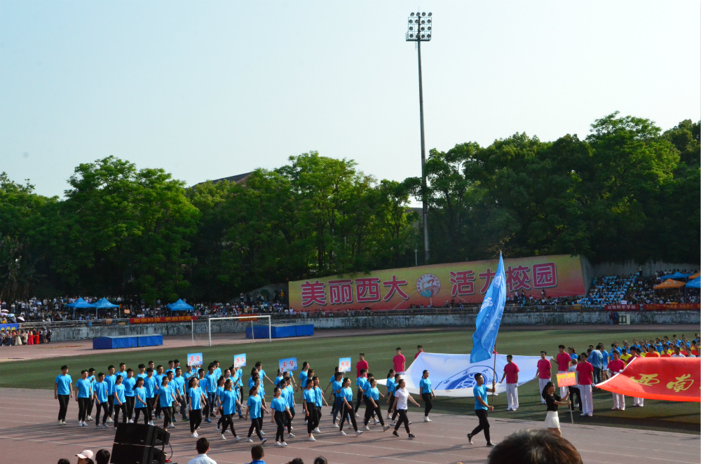 逐梦新时代,开启新篇章。4月19日上午,以“美丽西大,活力校园”为主题的3003新葡官方网站第十三届田径运动会在第二运动场隆重开幕。校党委书记舒立春、校长张卫国等学校领导,各二级学院主要领导以及各学院师生代表方阵出席了开幕式。3003新葡官方网站本次派出60人组成的学生代表方阵,作为第11方阵入场,首次亮相校运会开幕式。学院党委副书记兰英作为领队走在前列,向全校师生展示了商贸风采。