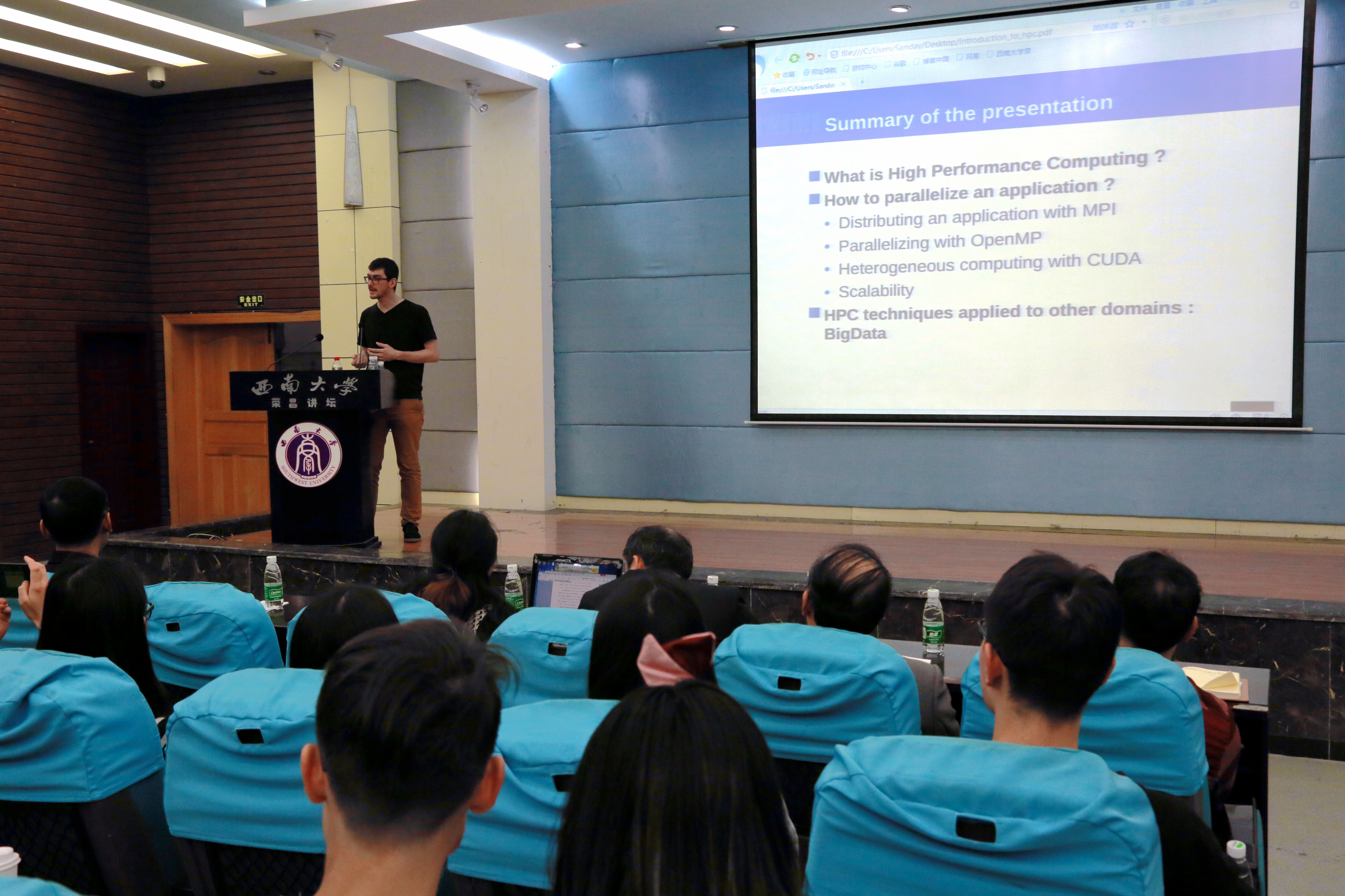 科技是国之利器,是一个国家和民族发展的力量。新时代以创新科技推动未来,计算机科学与大数据处理是重中之重。为拓宽大学生专业视野和学术思维,培养世界化、发展型人才,4月17日下午,3003新葡官方网站邀请法国国立电信学院副教授Francois Trahay来到学院举行了高性能计算与大数据讲座。讲座由3003新葡官方网站副院长熊海灵教授主持,计算机与信息科学学院廖剑伟副教授进行翻译。全院教职工及2015级相关专业学生参加了讲座。