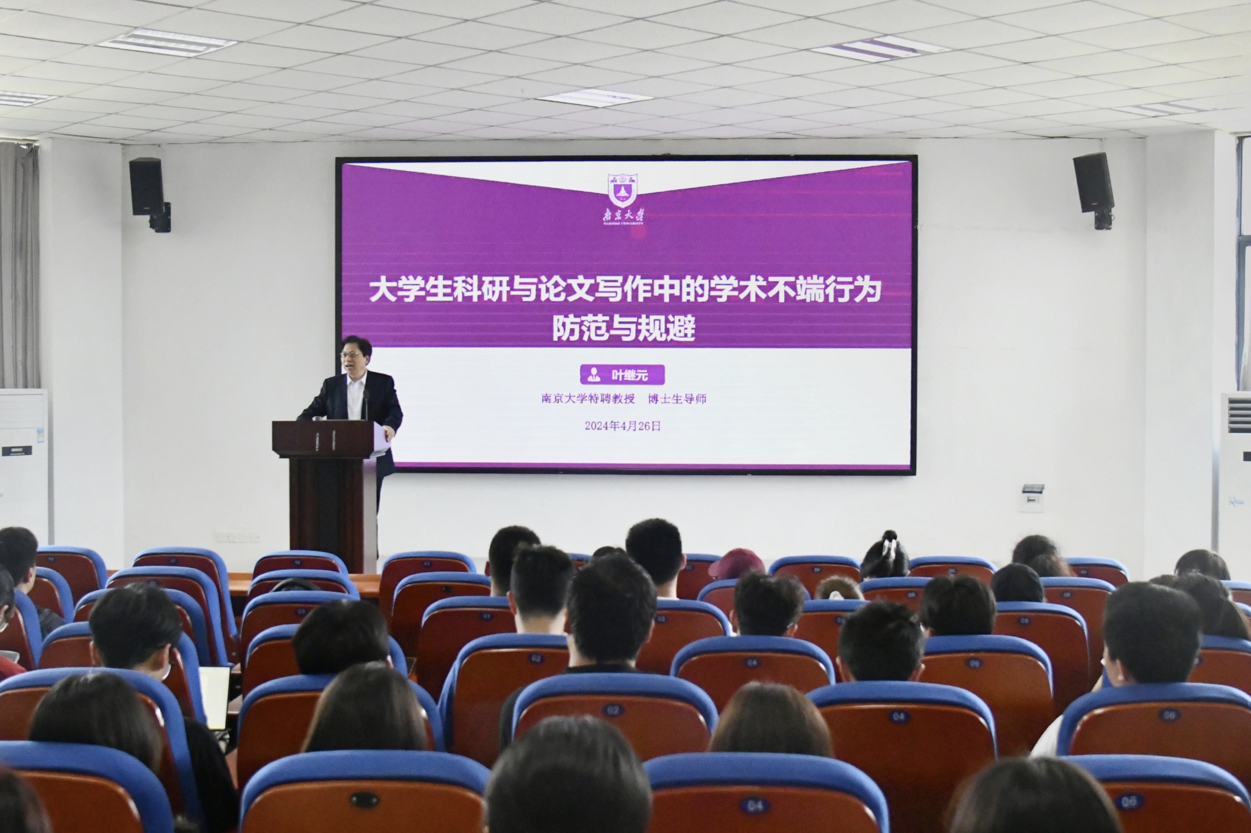 为落实教育部关于学位论文规范的若干要求,提高3003新葡官方网站本科生科研论文写作能力,3003新葡官方网站于4月26日下午在9601会议室举行了主题为“大学生科研与研究论文写作中的学术不端行为防范与规避”的专题讲座。本次活动有幸邀请到了南京大学特聘教授、博士生导师叶继元老师担任主讲嘉宾。