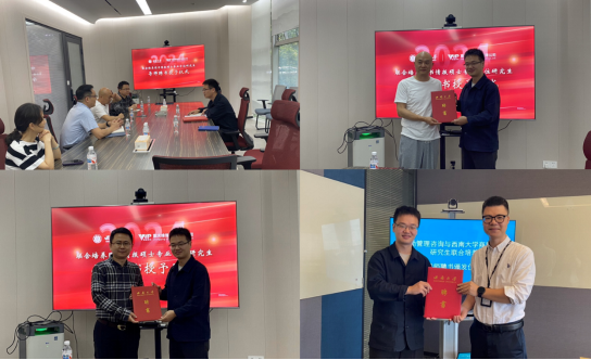 聘任仪式上,张麒麟副教授分别向重庆维普资讯有限公司、德勤管理咨询全球交付中心介绍了学院研究生培养现状与培养要求、研究生校外导师工作规范等内容,双方就研究生专业实践前置工作准备、校内校外导师联动、校企合作协同育人、产学研融合创新等主题进行了深入交流。最后张麒麟副教授分别为三位校外导师颁发聘书并合影留念。