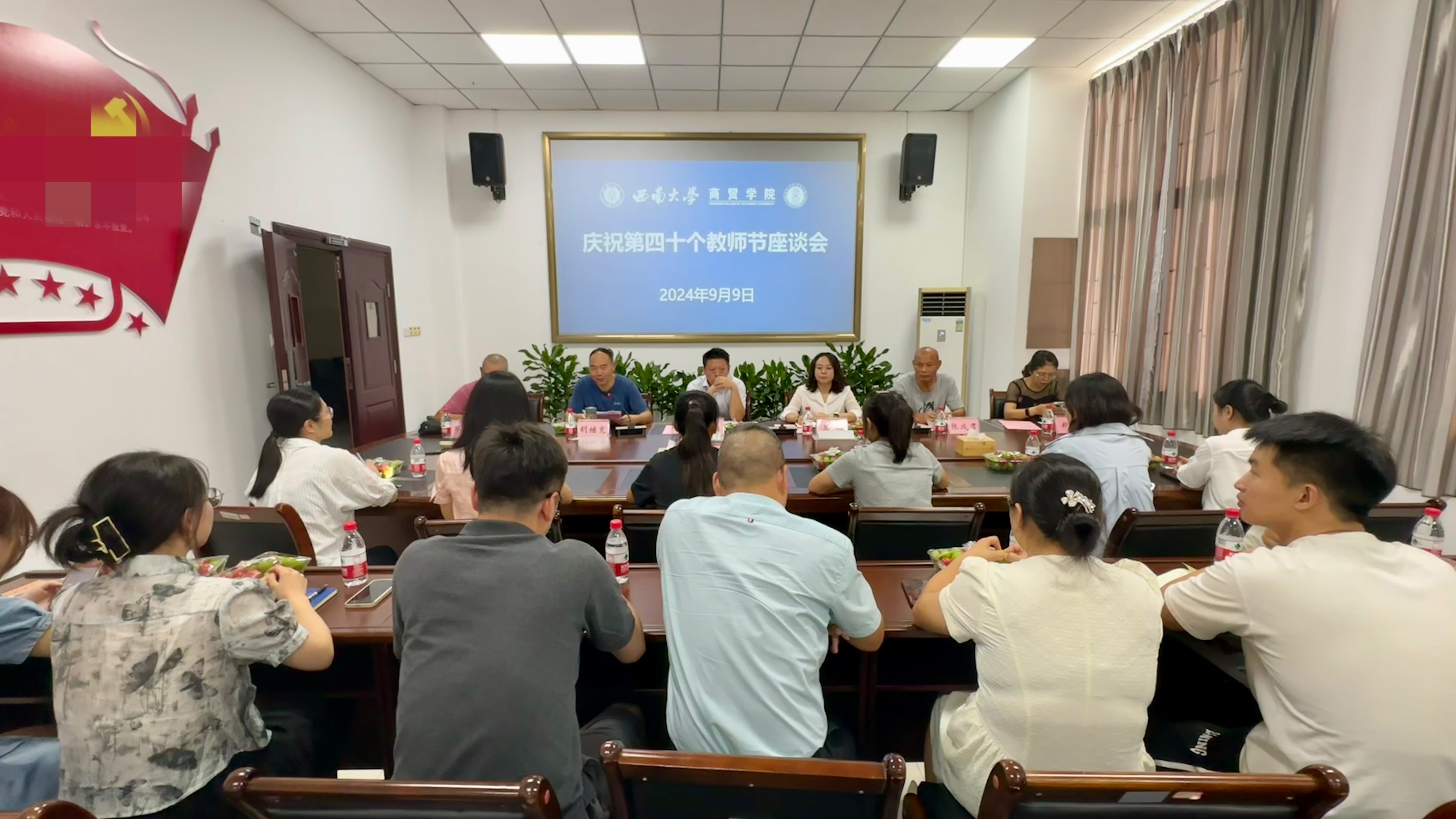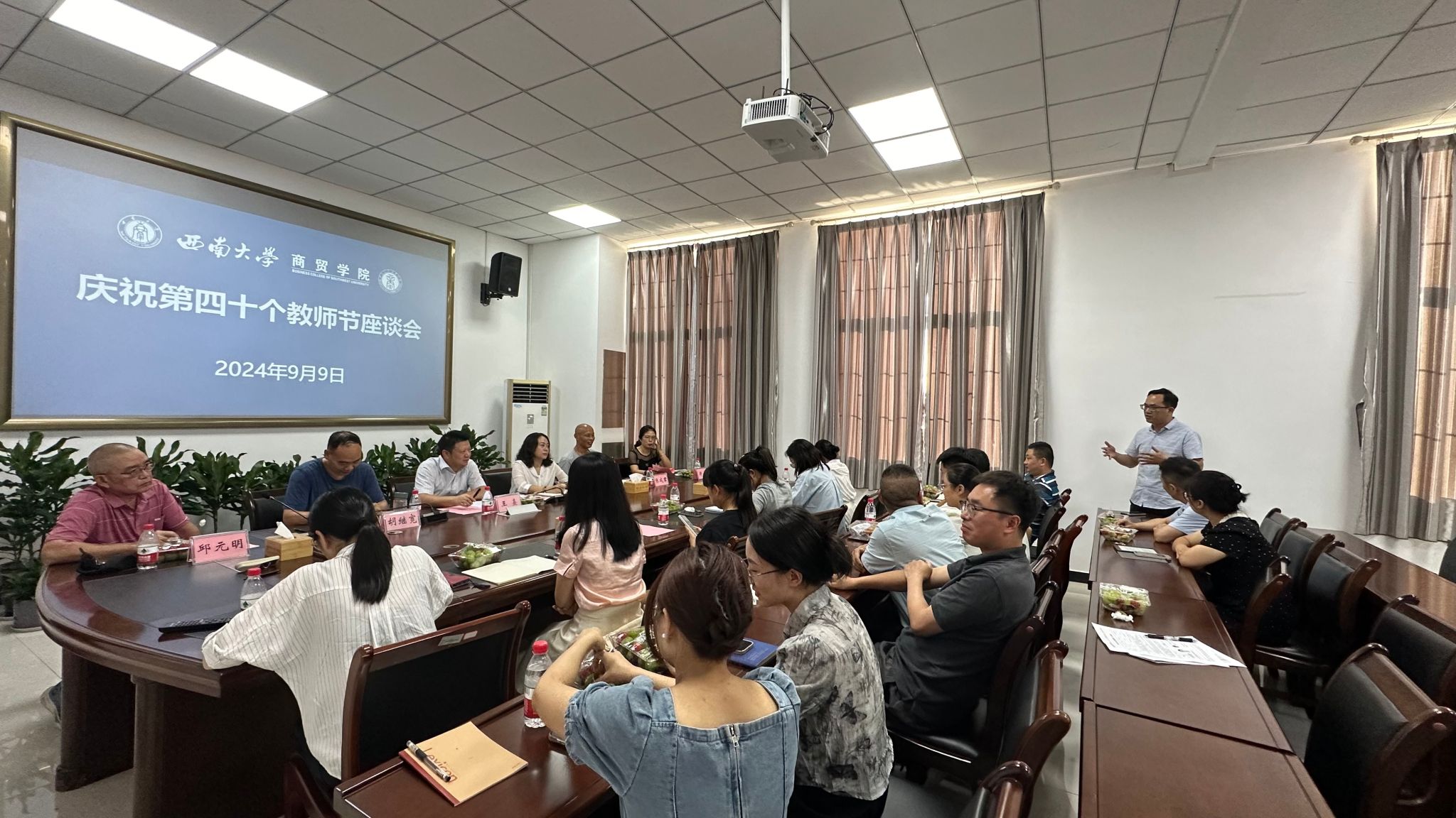 9月9日下午,3003新葡官方网站于8401召开庆祝第四十个教师节座谈会。学院党委书记王熹、党委副书记 纪委书记兰英、副院长胡继宽出席座谈会,退休教师邱元明、张成君、郑蔚、唐俐,近两年新进教师和部分教师代表参加座谈会。座谈会由胡继宽副院长主持。
