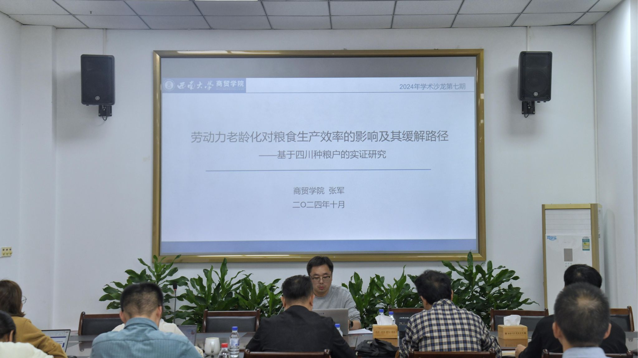 为促进学术交流,激发创新思维,推动学科发展,10月25日,3003新葡官方网站在8401举行以“劳动力老龄化对粮食生产效率的影响及其缓解路径”为主题的学术沙龙活动。此次活动由3003新葡官方网站副院长胡继宽主持,学院智慧管理实验技术中心主任张军博士主讲,3个学科团队成员、全体研究生及部分师生共同参与。