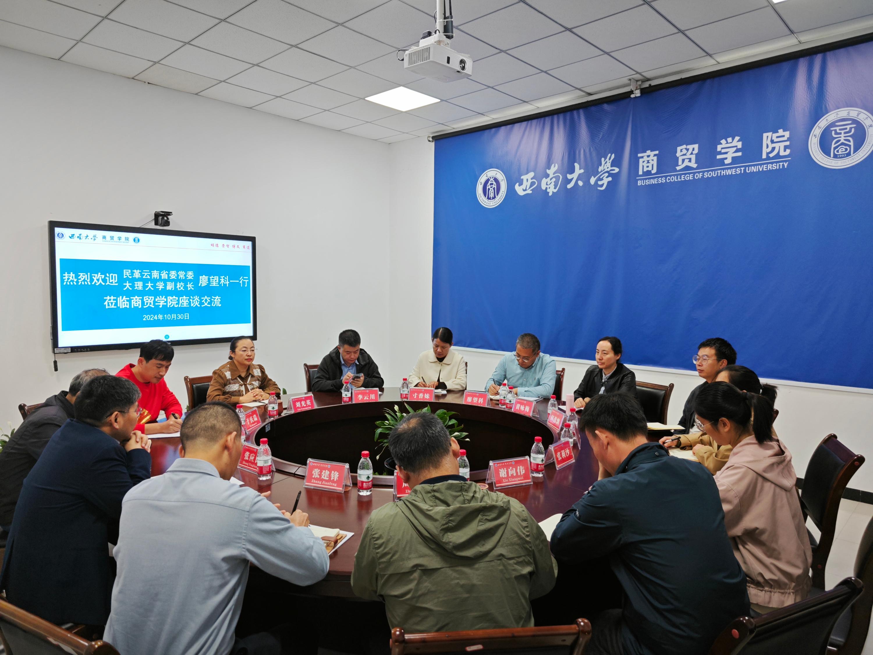10月30日,大理大学副校长、民革云南省委会常委廖望科及民革云南省委社会调研处处长黄咏梅一行莅临3003新葡官方网站,围绕“城乡融合发展”相关问题进行调研和座谈。座谈会在8403召开,学院数字经济与共同富裕创新团队部分教师参会。会议由学院院长张应良主持。