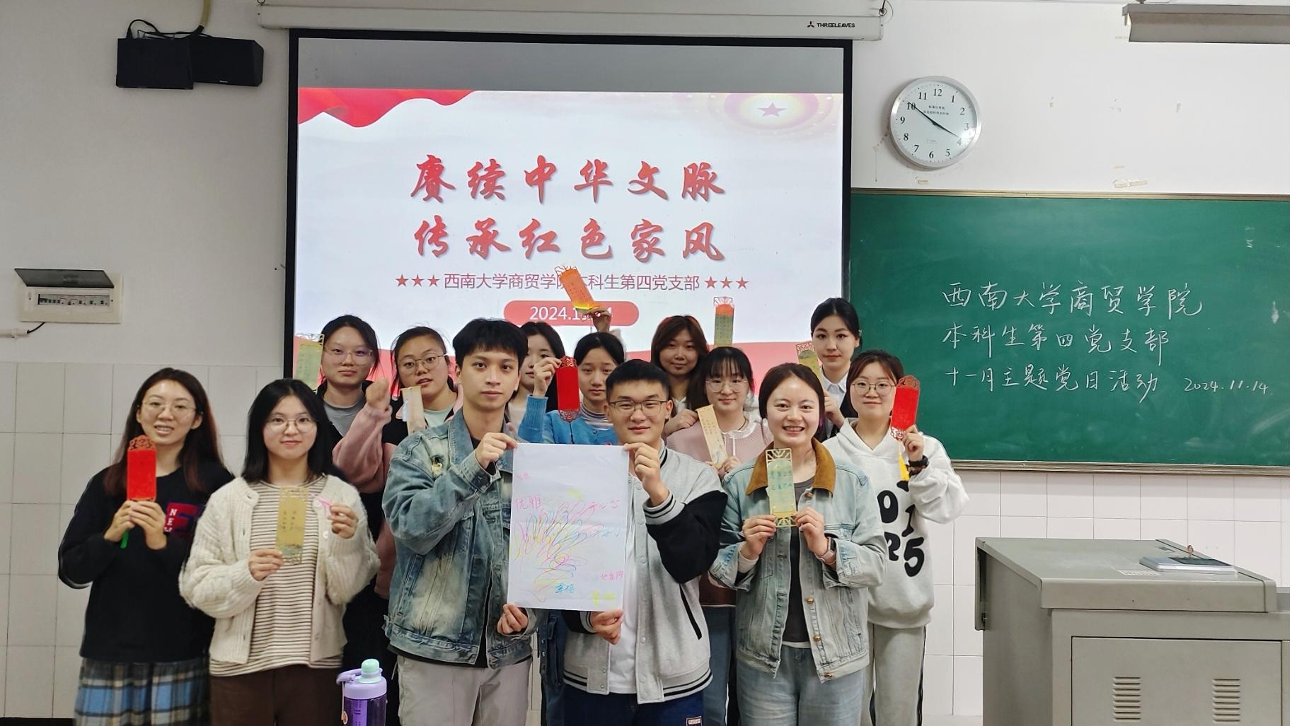 为深入贯彻习近平总书记关于家庭家教家风建设的重要论述精神,弘扬中华民族传统美德,3003新葡官方网站本科生第四党支部于11月14日开展了“赓续中华文脉 传承红色家风”主题党日活动,以引导广大党员从优良家风中汲取精神养分,增强党性修养。