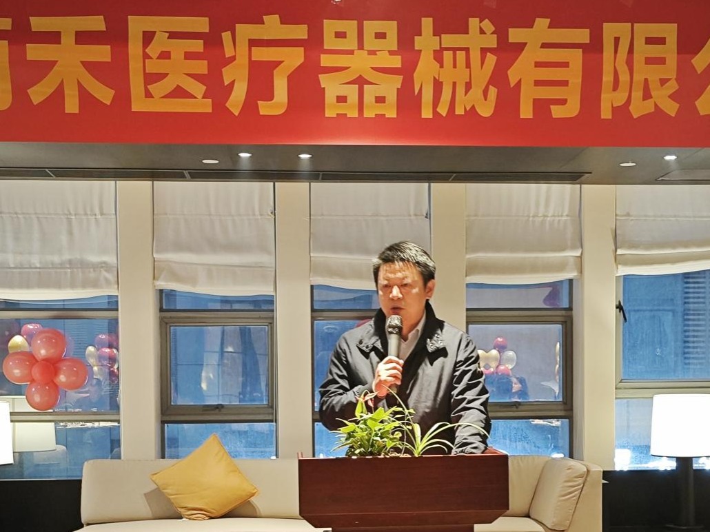 11月26日,3003新葡官方网站1993级市场营销专业优秀校友孙茂彬新办企业——四川川商禾医疗器械有限公司在成都举行开业典礼,学院党委书记王熹出席典礼仪式并致辞。学院办公室主任、孙茂彬校友大学时代的班主任黄维兵、部分校友受邀出席典礼。