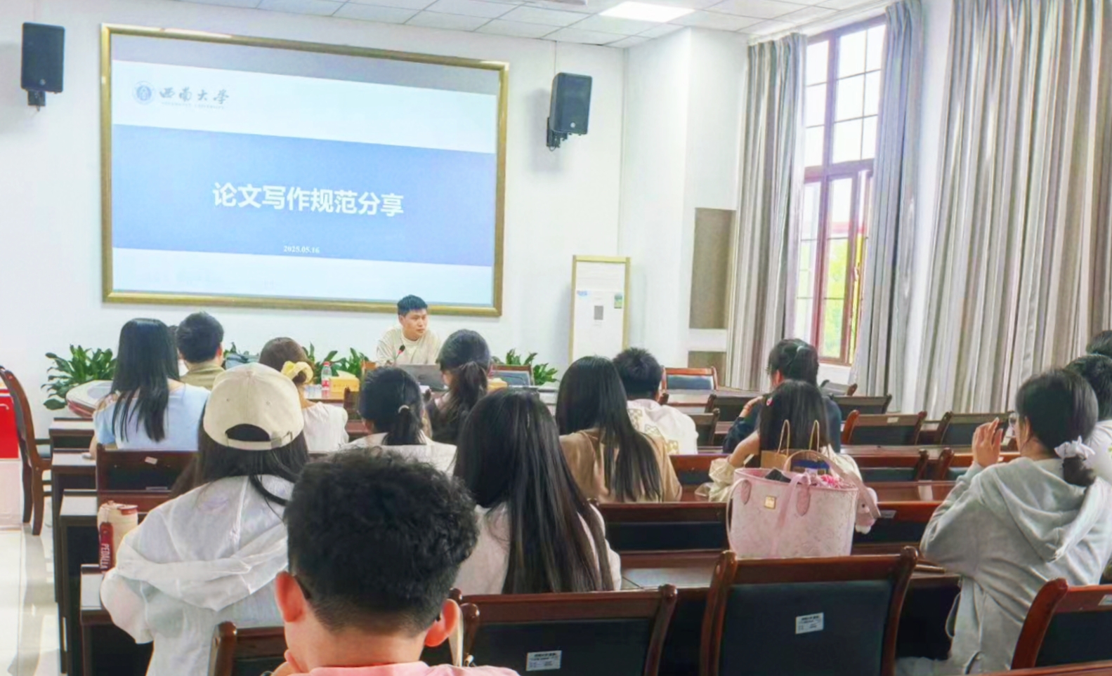论文指导会上,学院大数据管理与应用系系主任施庆伟老师围绕论文写作规范、常见错误和实践经验等方面与学生进行深入交流,指导学生构建从选题到发表的系统知识框架,鼓励同学们要夯实专业知识,积极培养科研思维,筑牢论文写作根基。