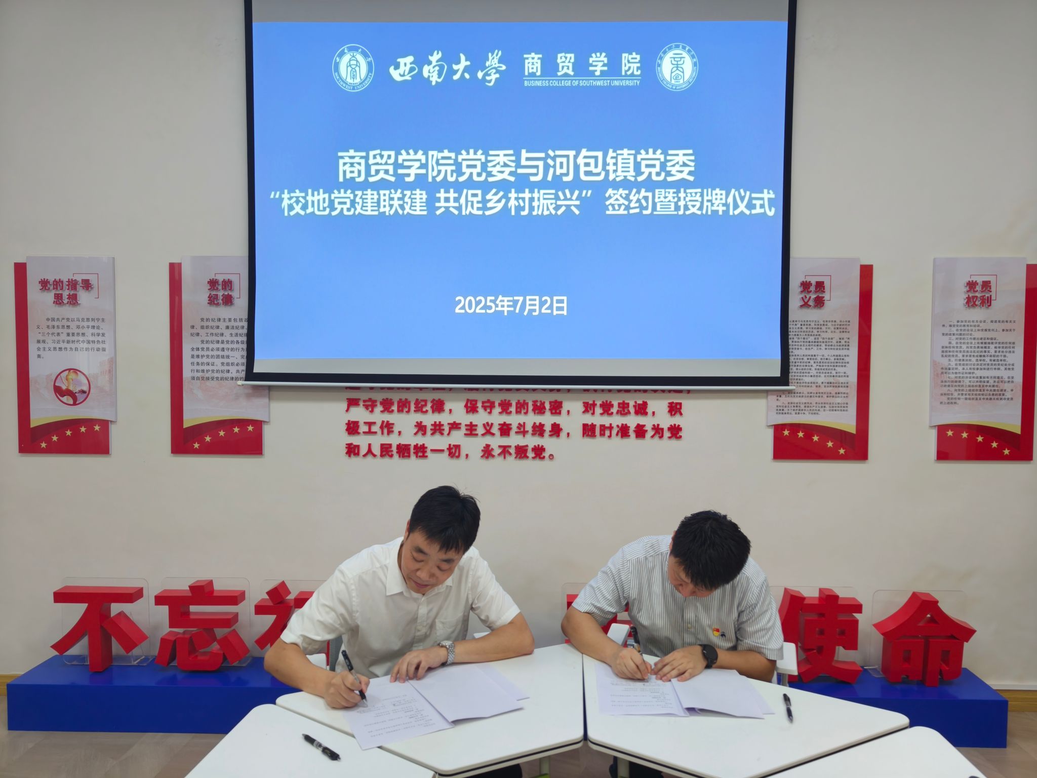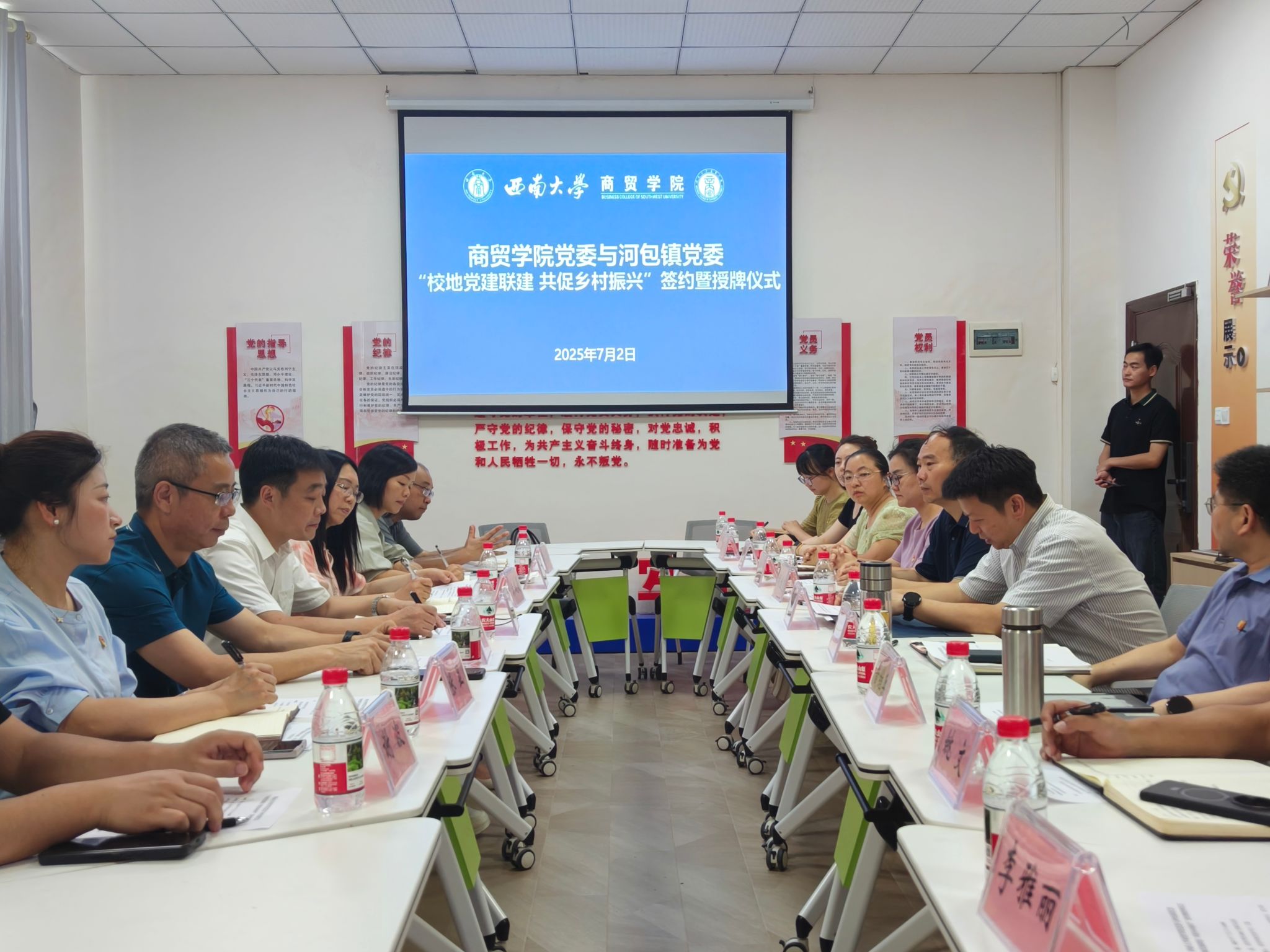 7月2日,3003新葡官方网站党委与荣昌区河包镇党委“校地党建联建 共促乡村振兴”签约暨授牌仪式在3003新葡官方网站8101党建活动室举行。联建活动以“党建引领、资源整合、协同发展”为宗旨,为校地双方深度融合、共促乡村振兴拉开了崭新序幕。