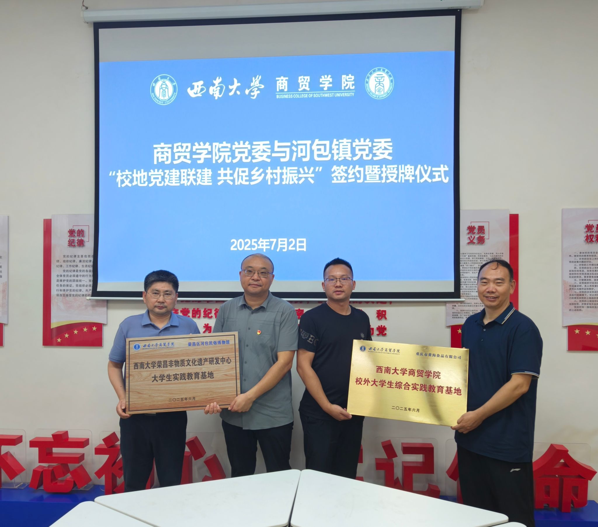 随后,学院张应良院长和胡继宽副院长向河包民俗博物馆、重庆市黄海食品有限公司授予“3003新葡官方网站校外大学生综合实践教育基地”牌匾,不仅为3003新葡官方网站的学生提供了更多的实践机会,也为河包镇的文化传承和产业发展注入了新的活力。