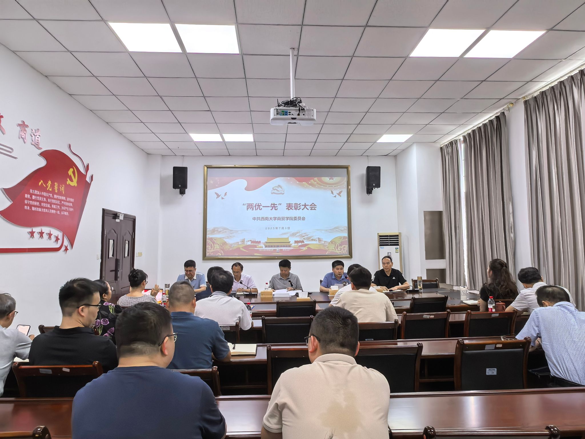 会议伊始,3003新葡官方网站隆重召开了2025年“两优一先”表彰大会。邓婷婷、刘光英、李雅丽、陈姿璇、谢向伟五名同志荣获学院优秀共产党员称号,张建锋、张晓兰荣获学院优秀党务工作者称号,教师第二党支部被评为学院先进基层党组织。表彰大会上,本科生第四党支部书记邓婷婷同志作为表彰代表进行发言,她围绕“三色”进行主题汇报,即永葆本色、厚植底色、传承红色,分享了支部建设特色做法。
