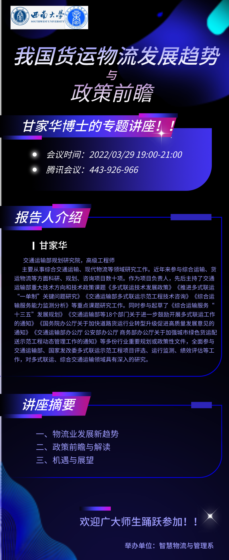 学术讲座:我国货运物流发展趋势与政策前瞻