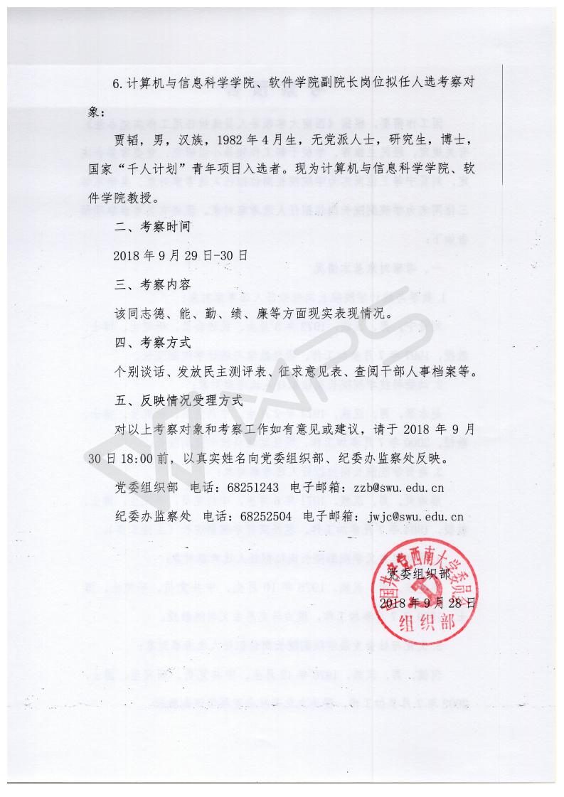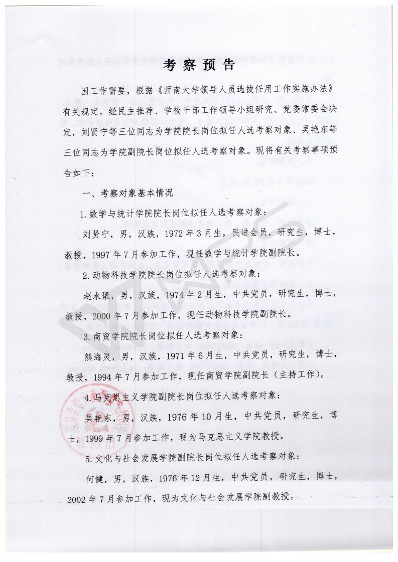 3003新葡官方网站干部考察预告