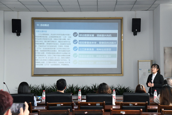 在阳光小分队、宣纸小分队、桂族小分队、护法小分队、红旅小分队、遵义小分队的分享中,我们感受了攀枝花的乡土风情、柳州的侗乡人文、瑞金的长征红色文化,了解了“活宝”宣纸的制作流程、六盘水和遵义的宣讲活动。分享队伍通过多个制作精美的实践宣传视频让我们看到了“三下乡”活动丰硕的实践成果。