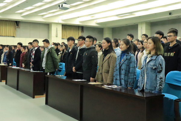 在奏唱中华人民共和国国歌后,兰英副书记宣读了《共青团3003新葡官方网站委员会关于成立共青团3003新葡官方网站商贸学委员会团校的通知》,阐述了团校宗旨、主要任务及考核、结业标准等内容。接着,廖鹏书记宣读了《共青团3003新葡官方网站委员会团校学员守则》,对参与此次培训的学员提出了具体要求。随后,学员代表李俊锋同学发言,他表示青年大学生生逢其时,也重任在肩,要艰苦奋斗、创新思维,端正态度、明确目标,学真本事,做堂堂正正的人。