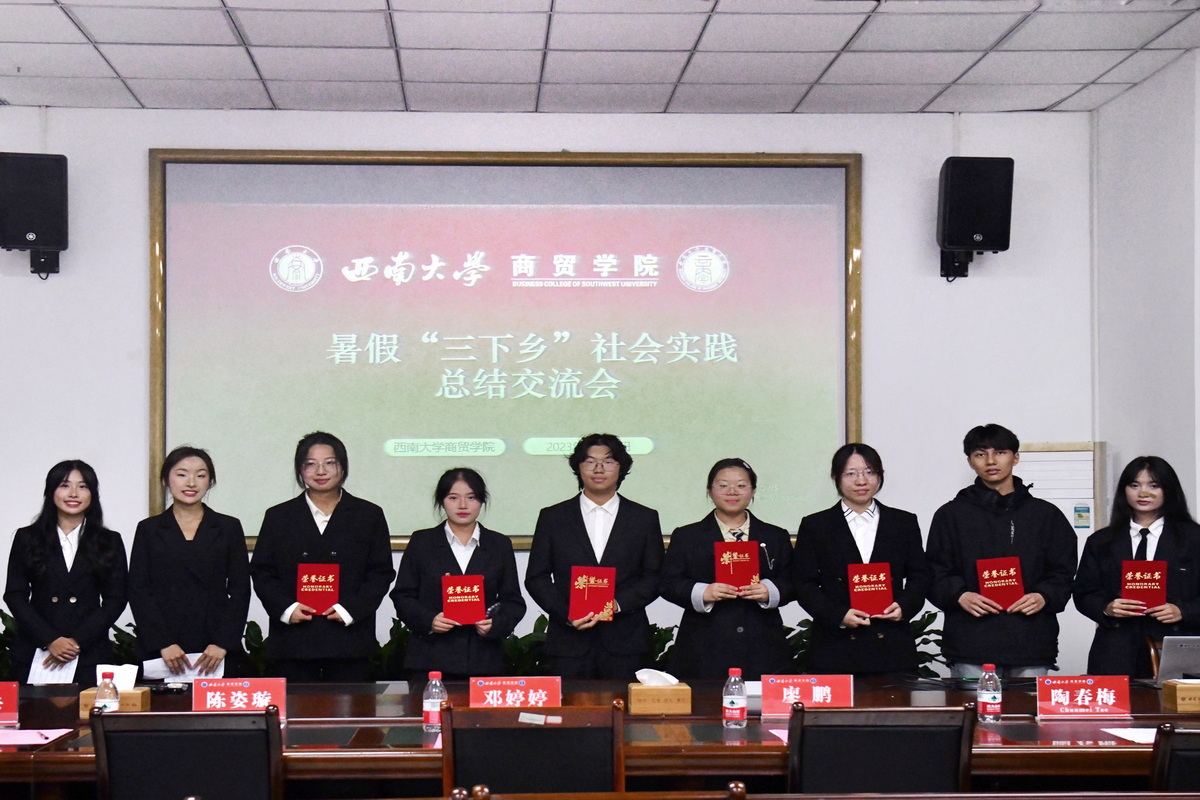 此次交流会首先由各小分队代表依次上台发言,向在场嘉宾及同学介绍所属分队在暑假“三下乡”社会实践活动中的精彩瞬间与成长收获:各小分队与当地村委会及相关乡村振兴企业进行交流,走进现代乡村,结合当地文化,发扬不怕苦,不怕累的精神,为乡村振兴尽一份自己的绵薄之力。最终,四川宜宾安石小分队荣获活动一等奖。