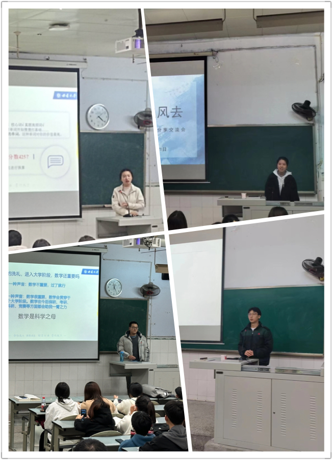 活动还陆续邀请学院“朋辈帮扶加油站”的平露、马照明、冯迦慧、赵家华四位优秀学长学姐2023级新生作学习经验交流。分享在专业课程学习、通识教育课程学习、学生奖学金申请、推免研究生申请等方面的好经验好做法,帮助2023级新生更好地认识自己,更加科学合理地进行学习规划,提升学习效率。
